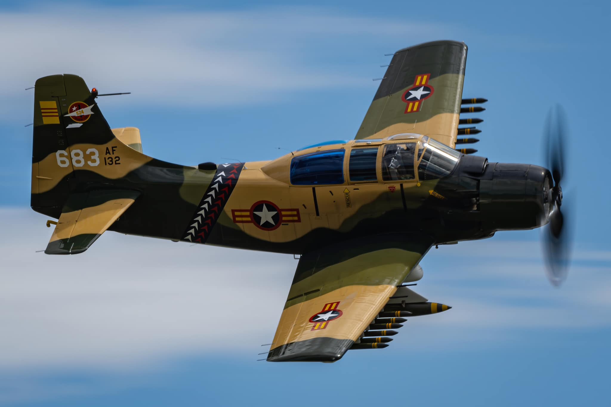 Airshow PerformersThe sky’s headliners are here. *Subject to change without notice. AD-5 Skyraider SBD Dauntless TBM Avenger F3F Flying Barrel F7F Tigercat P-51 Mustang B-25 Mitchell Brad Wursten Airshows Brewster F3A Corsair Franklin’s Flying Circus C-130 – Modular Airborne Fire Fighting System Trojan Phlyers Wings of Blue – USAF Parachute Team F-35A Demonstration Team Ready to see all the action up close? GET TICKETS