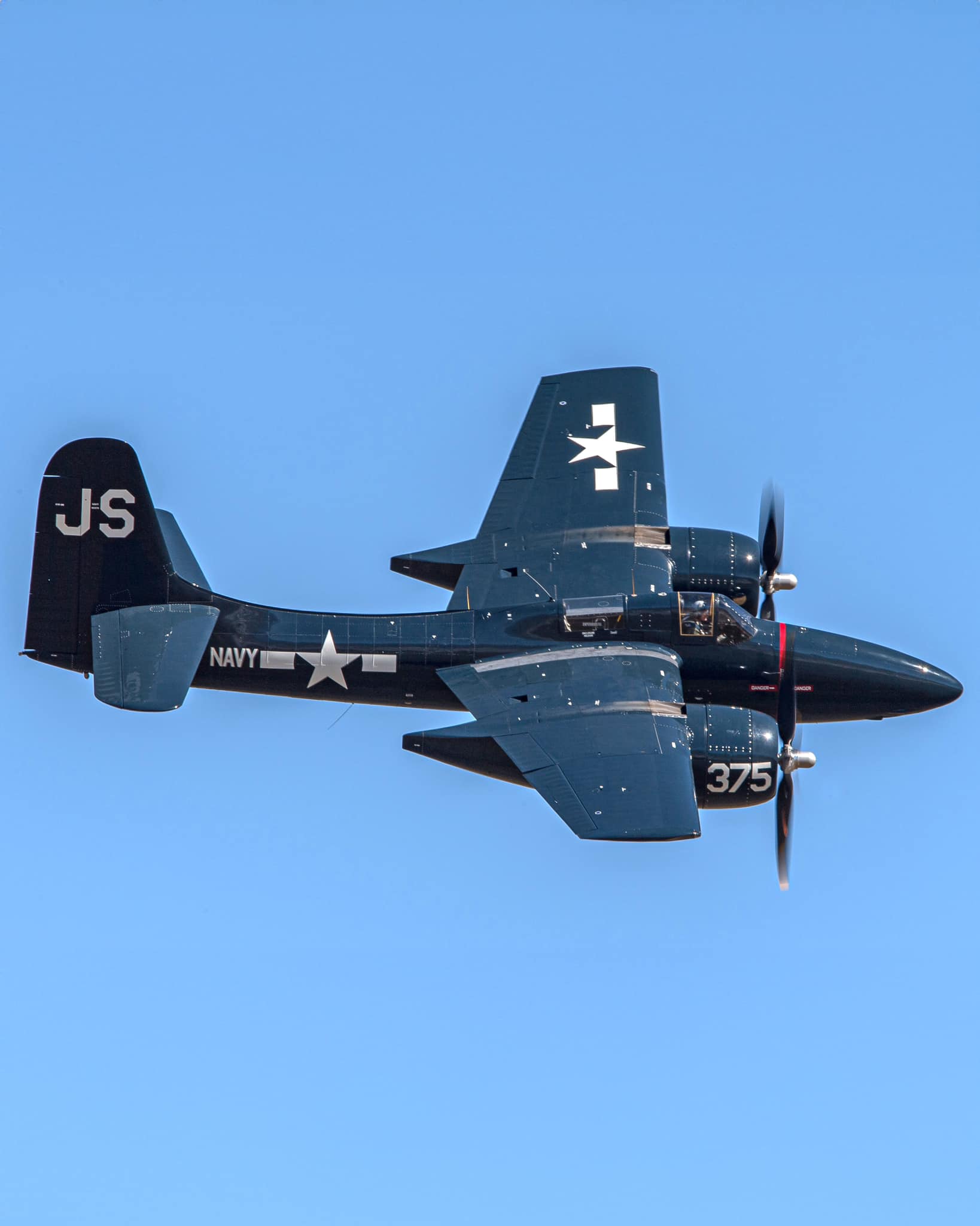 The Grumman F7F Tigercat was designed to meet a 1941 Navy requirement for a twin engine fighter that could get to altitude fast, had long range, a lot of firepower. The first flight was in December 1943 but the aircraft failed carrier landing tests because of low speed stability issues when operating on a single engine. This was corrected with the F7F-3 in 1945 with enlarged vertical stabilizer and rudder, but by that time the Navy preferred the Corsair and Hellcat fighters. A late variant (F7F-4N) was certified for aircraft carrier operations.